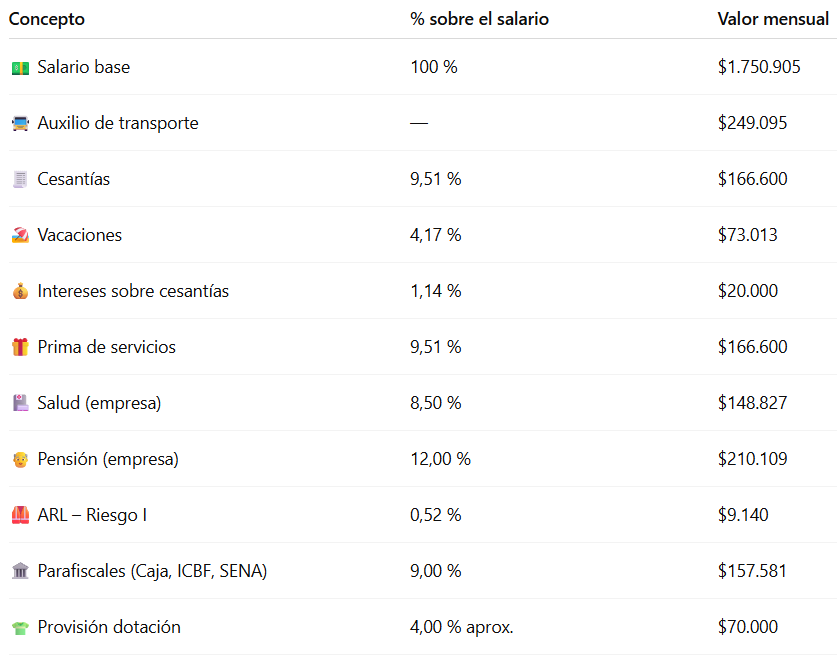 • 🧑‍💼 Salario mínimo mensual: $1.750.905 COP